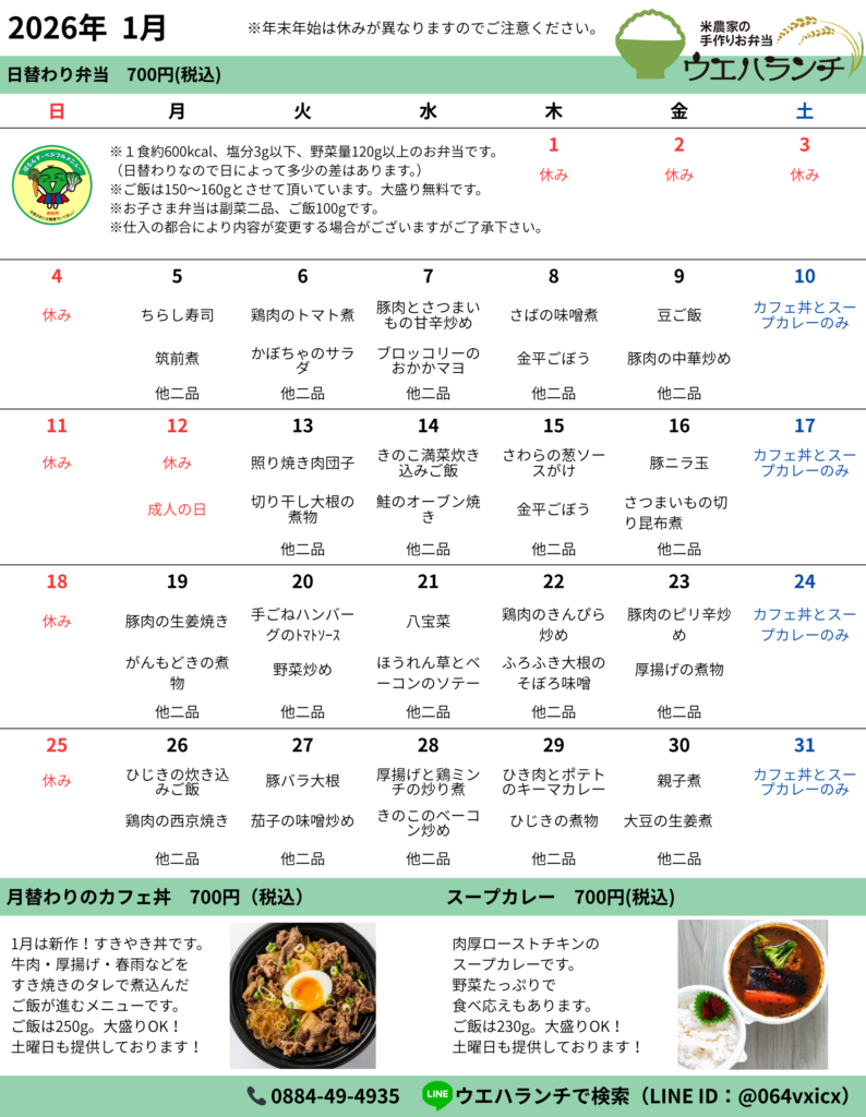 1月のカフェ丼は「すきやき丼」をご用意しました🍲✨
