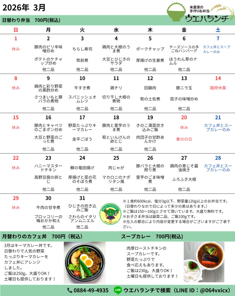 ※ 3/14(土)は都合により、臨時休業とさせていただきます。