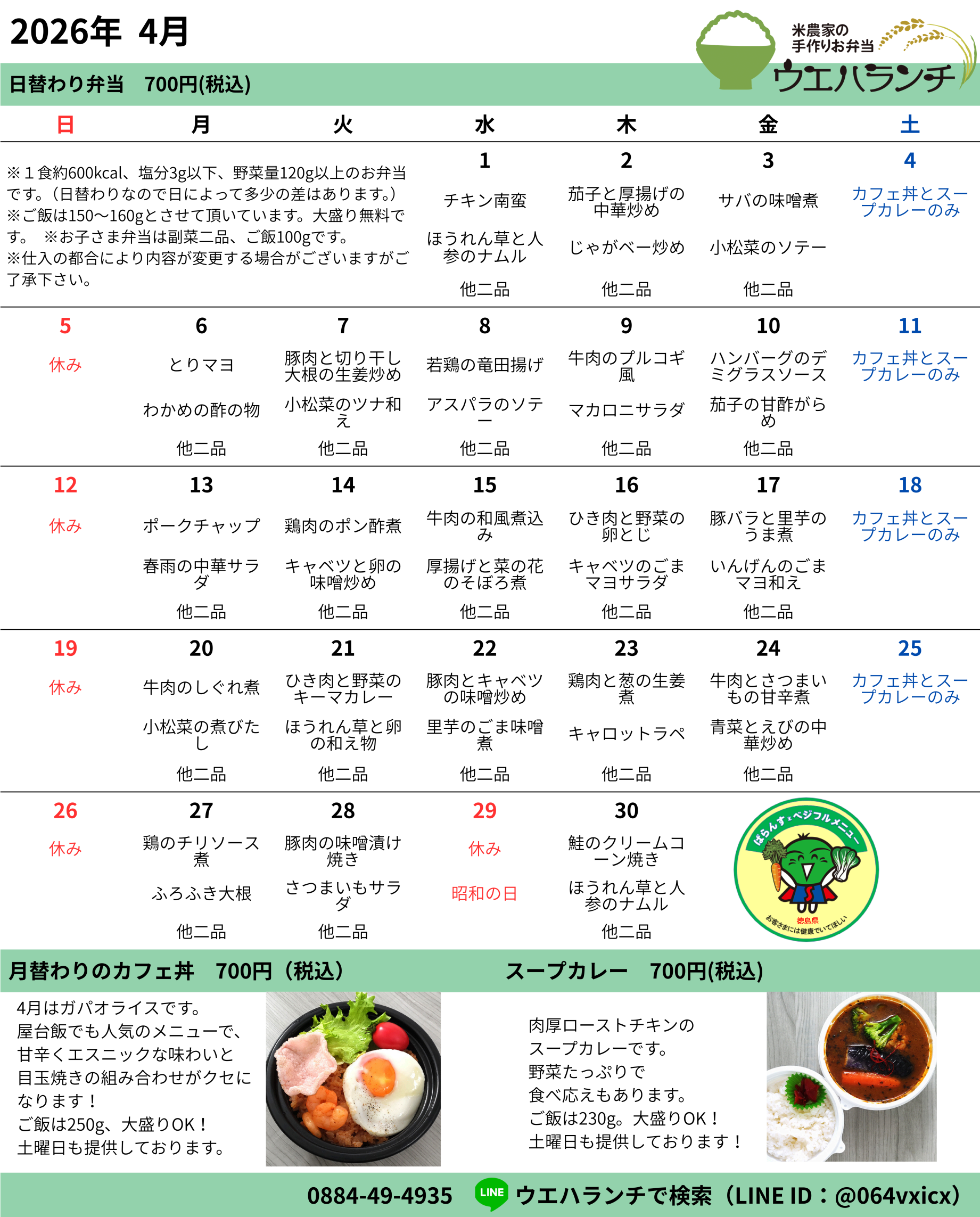 4月のメニュー表です!